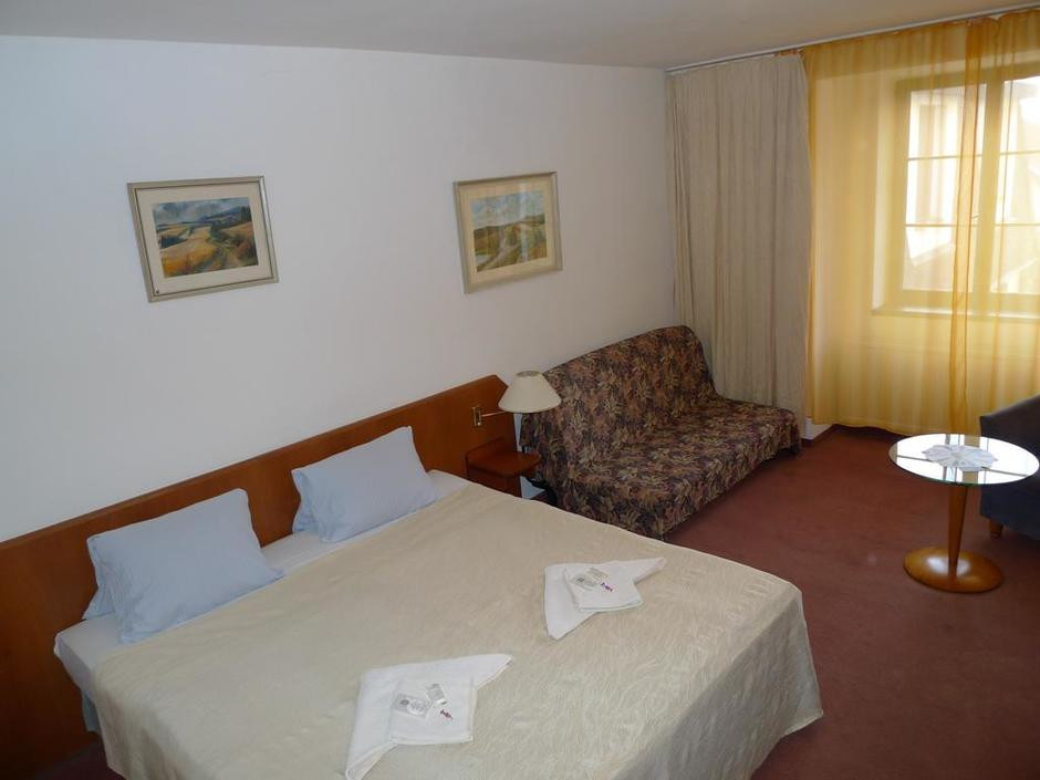 ТРАНСФЕРПокупали путевку у Eurotouch, забрали нас из аэропорта Рузине и отвезли в отель. Время в пути – 15-20 минут, наш отель был первый, что порадовало в начале (потом узнав про удаленность от центра – радости поуменьшилось).ОТЕЛЬТипичная трешка для Европы. Его особенностью является то, что это заведение «два в одном»: отель и ясли.Ресепшн. Говорили по-русски только две женщины: одна была на ресепшшн при нашем заселении и одна работает на кухне. Остальные служащие не понимают ни русский (что странно для отеля, который, как мы поняли, специализируется на туристах из СНГ), ни английский (что странно вдвойне). Так что, если необходима помощь в решении возникающих вопросов, этот факт необходимо учесть. Хотя в Чехии это не является глобальной проблемой, а учитывая, что муж разговаривает по-украински, можно сказать, что языкового барьера для нас не существовало. Мусор из номера выносили ежедневно. Раз в три дня мыли полы, пылесосили и меняли полотенца. В номере есть телевизор и холодильник. Wi-fi работал с переменным успехом: постоянного не было, скорость тоже оставляла желать лучшего. Проблему можно решить спустившись с вашим гаджетом к ресепшн, где приём устойчивый. В непосредственной близости от отеля нет ни продуктовых магазинов, ни ресторанов-кафе. Имейте это в виду, т.к. придется все продукты таскать из города или ходить в близлежащие магазины (10-12 минут) в часы их работы.Завтраки хорошие: 3 вида мясной нарезки, 2 вида сыра, хлеб (темный и булочки), выпечка с черносливом, 2-3 вида сладких рулетов (с творогом, с яблоками и с маком), сухие завтраки (шоколадный и кукурузные хлопья), йогурт, яблоки. Из напитков пакетированный чай, кофе, сок, молоко. Плюс к этому выбору всегда предлагали что-то горячее, например, каша овсяная на молоке с малиной, сосиски 2 штуки, омлет с ветчиной. Тут отелю твёрдая «5»! Омрачало впечатление от завтраков только поведение некоторых наших сограждан, беспардонно тырящих продукты про запас. Доходило до того, что отдельные особо предприимчивые туристочки для этих целей приносили с собой здоровенные пластиковые контейнеры. СТЫДОБЕНЬ! Пока у нас понятие «ХАЛЯВА» будет превалировать над понятиями «самоуважение», «достоинство», «гордость» и т.д. не стоит обижаться на то, как к русским относятся за границей. Но отзыв не об этом.ДОРОГА к центру города от отеля – возможны 2 варианта:1. на автобусе до метро Андел, дальше пересадка на метро и в центр;2. выйти из отеля, налево, и вниз с горочки 10-12 мин к трамвайной остановке (довольно крутая горка!!! Зимой, в плохую погоду и нетренированным туристам будет непросто).Возвращаться также, но в обратном порядке. Начитавшись отзывов на этом сайте один раз попробовали вернуться из центра по другому пути: доехали на трамвае не до «Злихов», а до «Геолоджик» и далее с горочки вниз, но путь занял гораздо больше времени (не советуем так экспериментировать, особенно в дождь).ЭКСКУРСИИПланировали заранее, что хотим посетить. В итоге получился следующий список:1.самостоятельно (не в рамках экскурсионной программы) гуляли по центру Праги (Новый город, Пражский град, Страховская библиотека (настоятельно рекомендуем к посещению), Карлов мост, …2.экскурсия с Best of Travel в Вену. Великолепный волшебный город, но мы остались не в восторге от «своеобразной» работы экскурсовода - Гульнара (она же Ульяна) Шутенко.3. экскурсия 